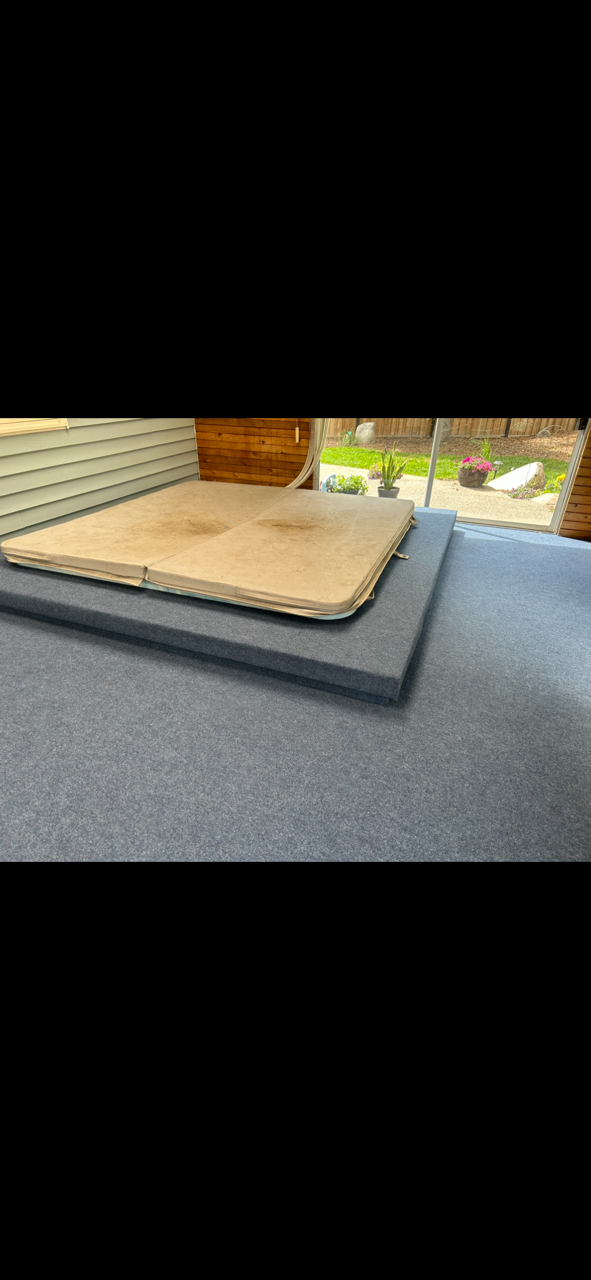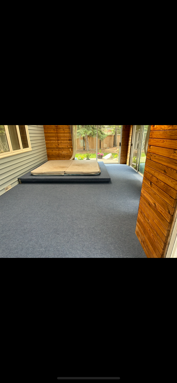 Custom commercial carpet installation designed for safety, comfort, and style around an indoor hot tub area, combining practicality with elegance.