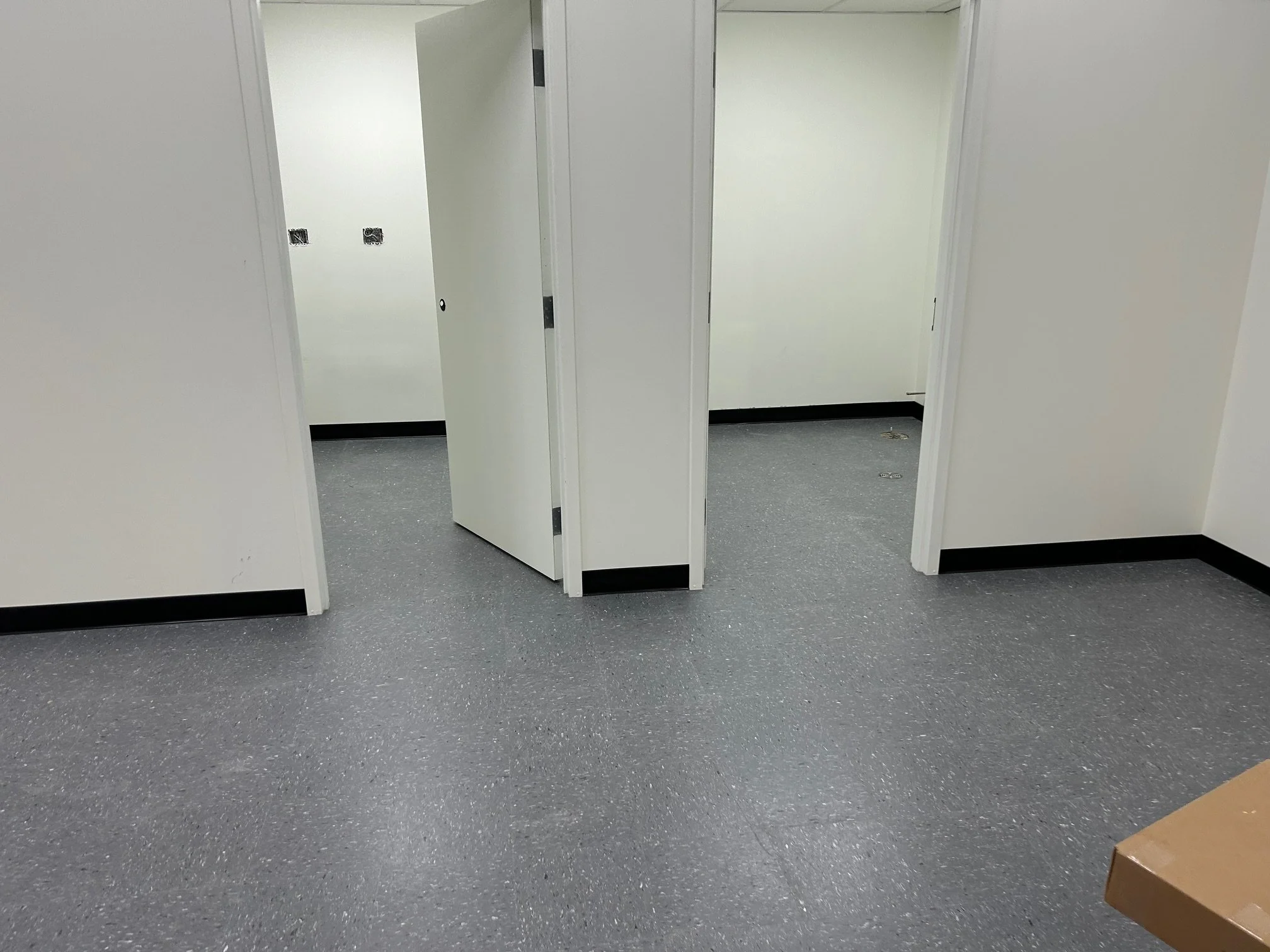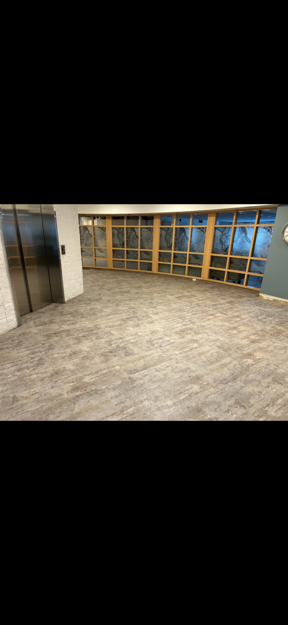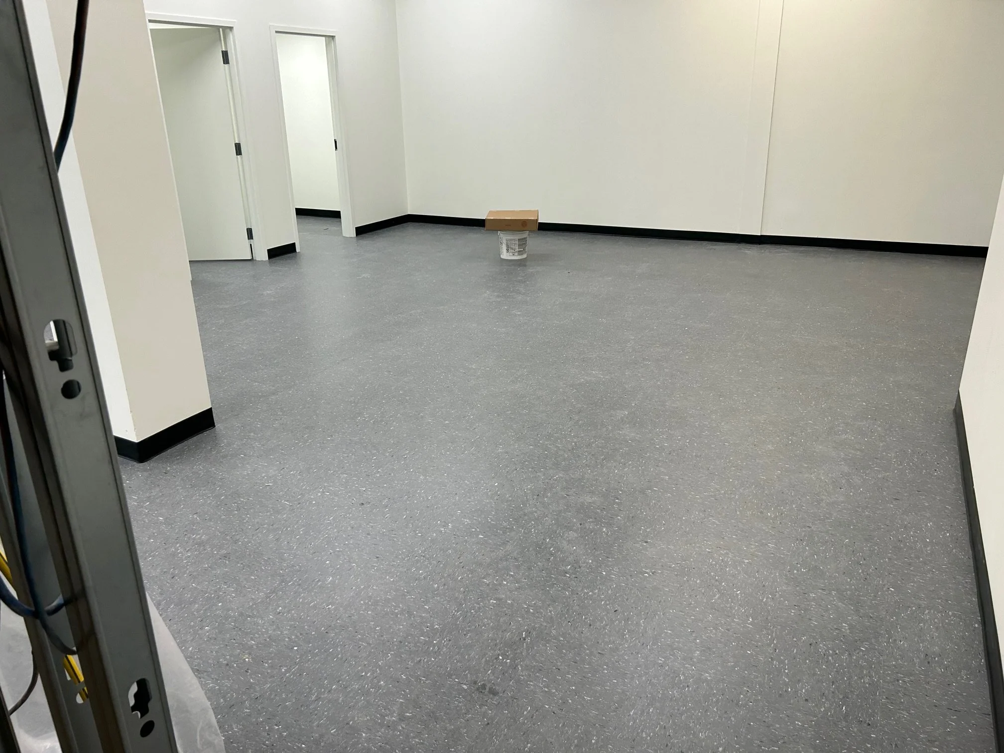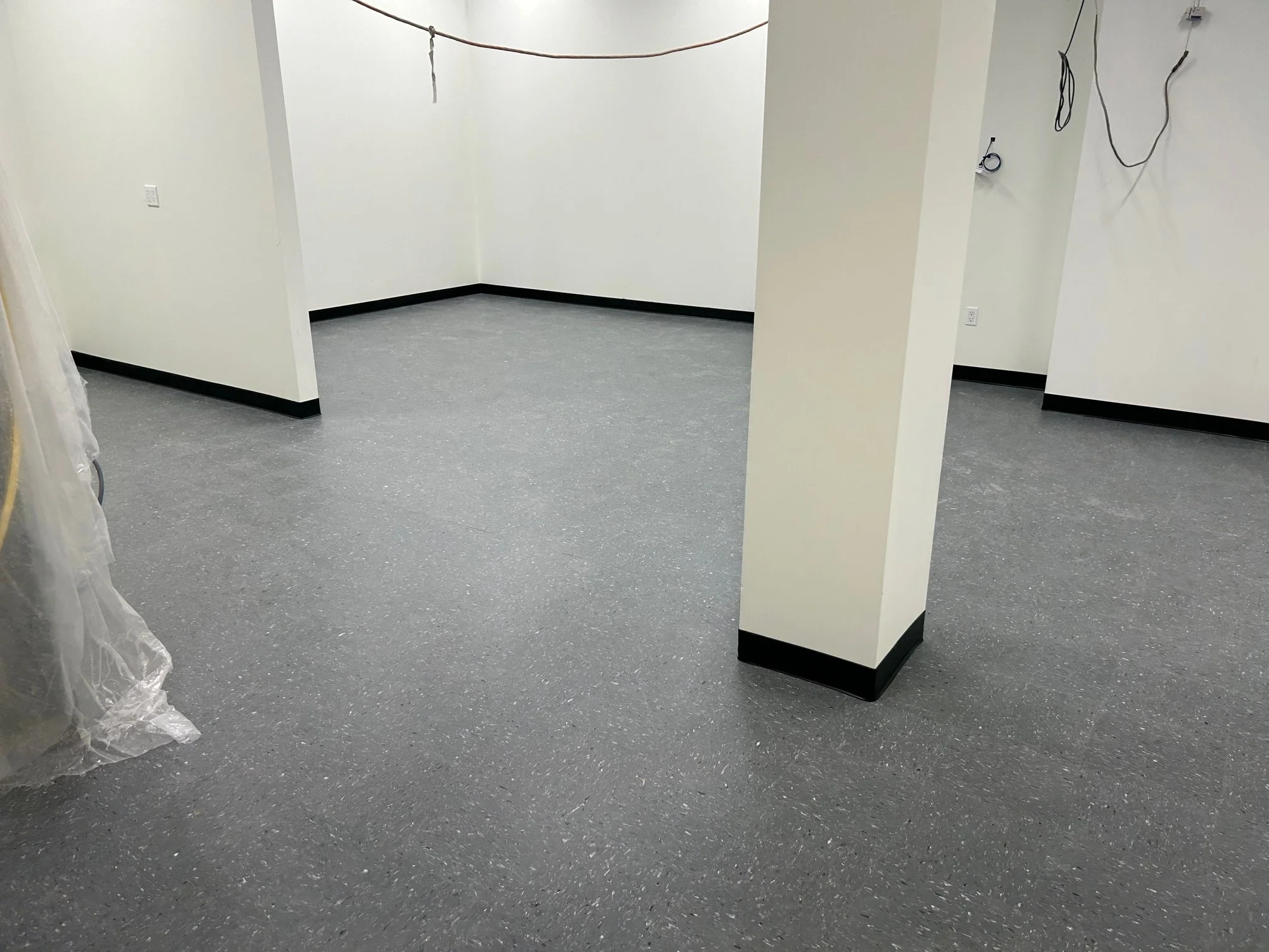 Durable vinyl tiles installed in a depot space, designed to withstand heavy foot traffic while providing a clean, professional, and low-maintenance flooring solution.