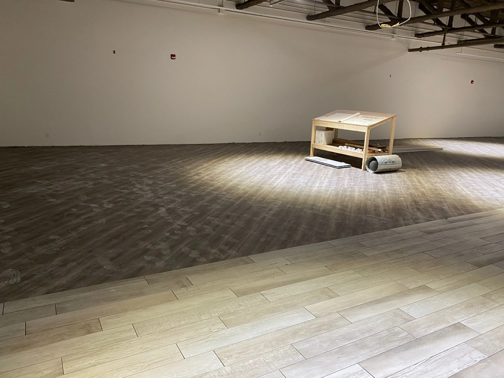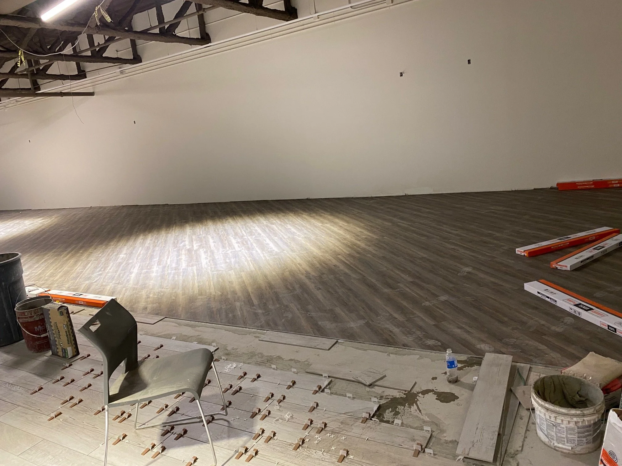 Precision installation of glue-down vinyl tiles, creating a long-lasting, stylish, and easy-to-maintain floor solution.