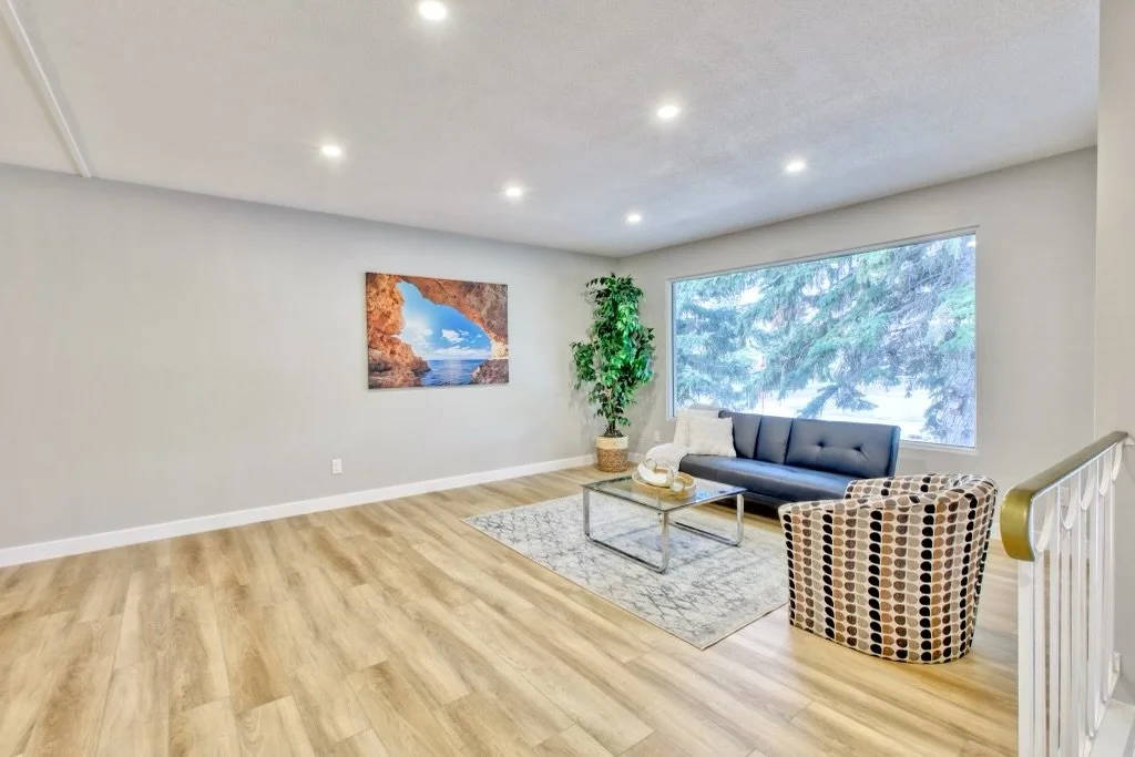 Beautiful natural-look vinyl flooring installed throughout the main floor, combining durability, low maintenance, and a warm, inviting aesthetic for everyday living.