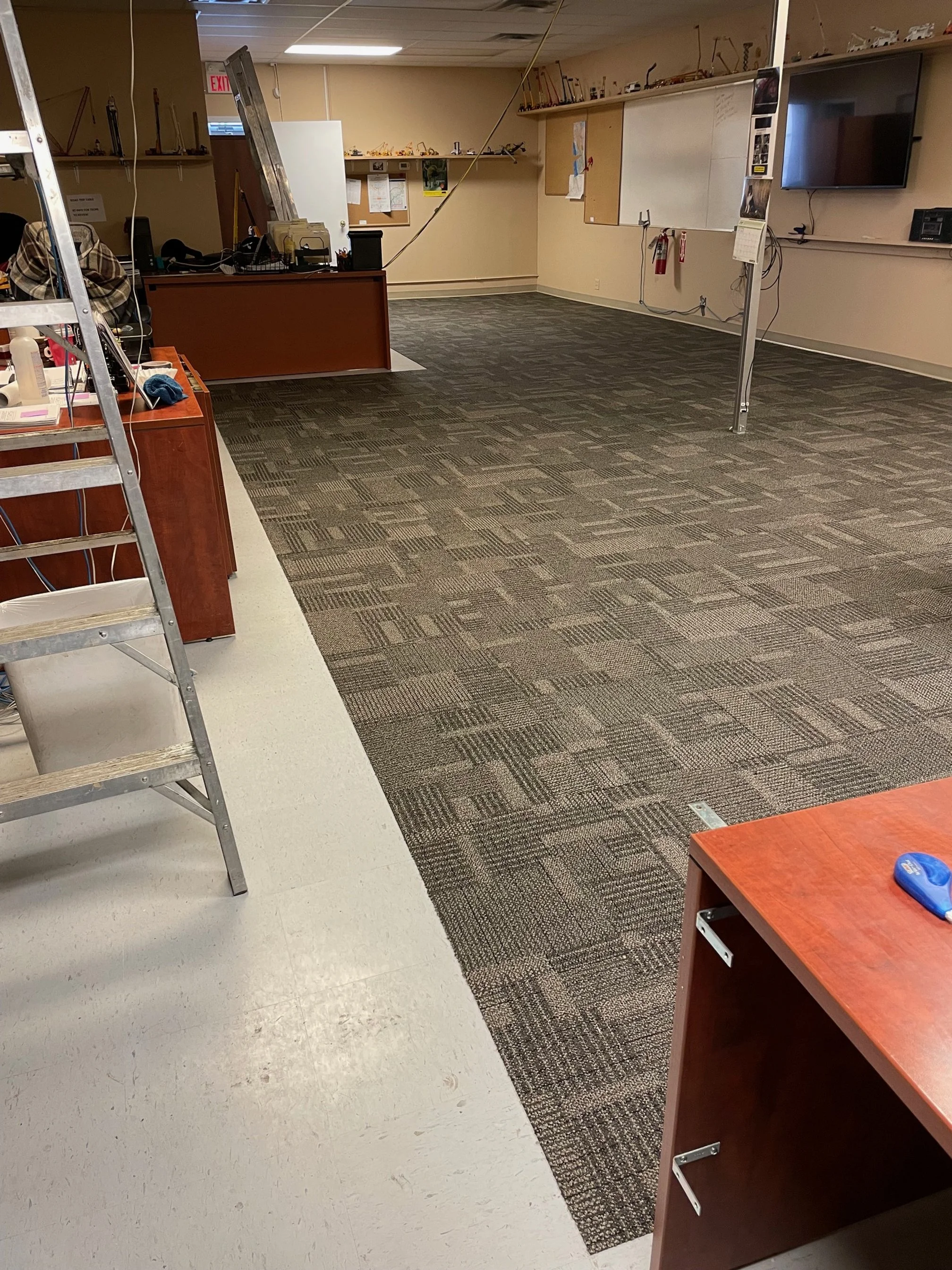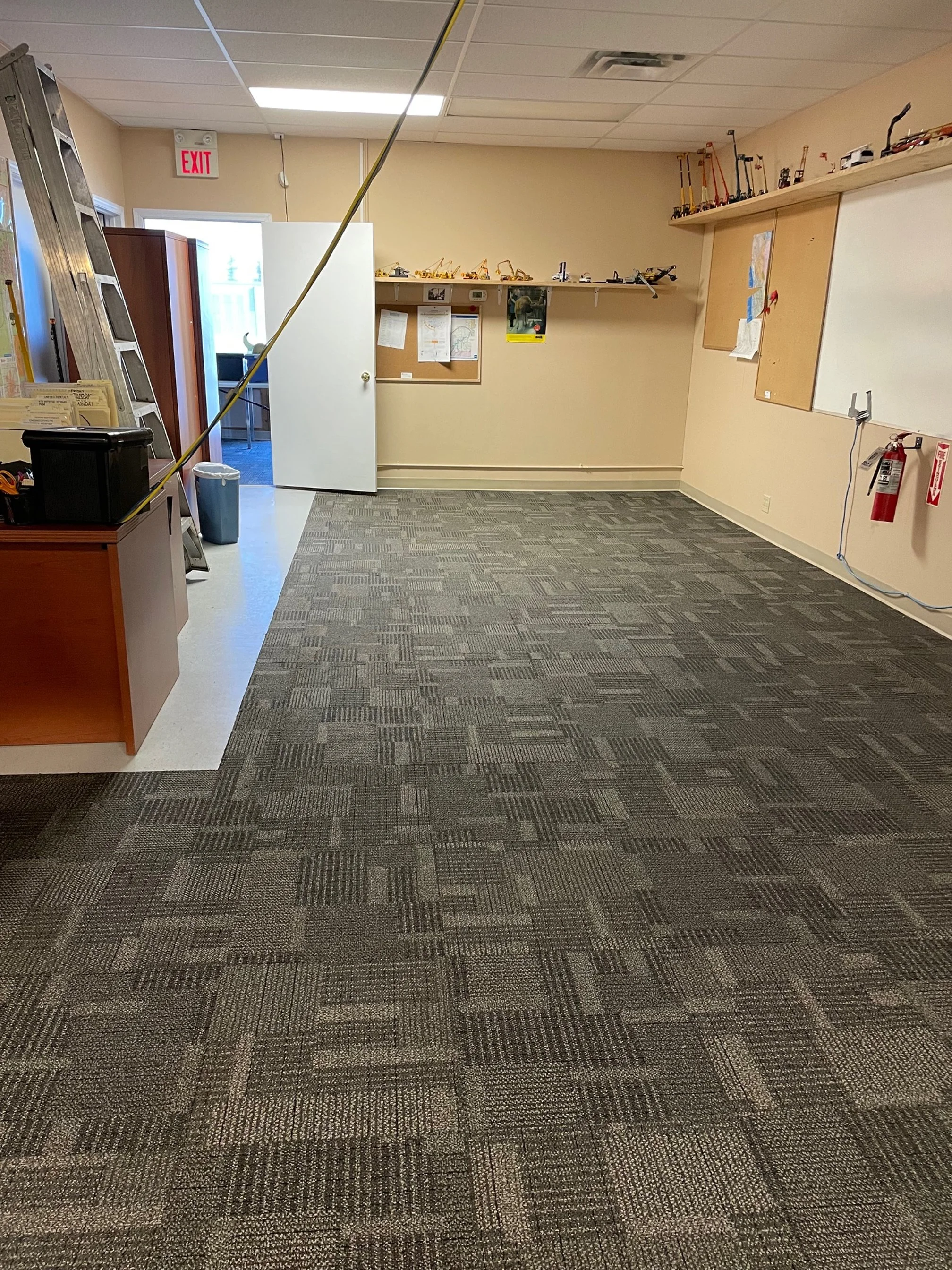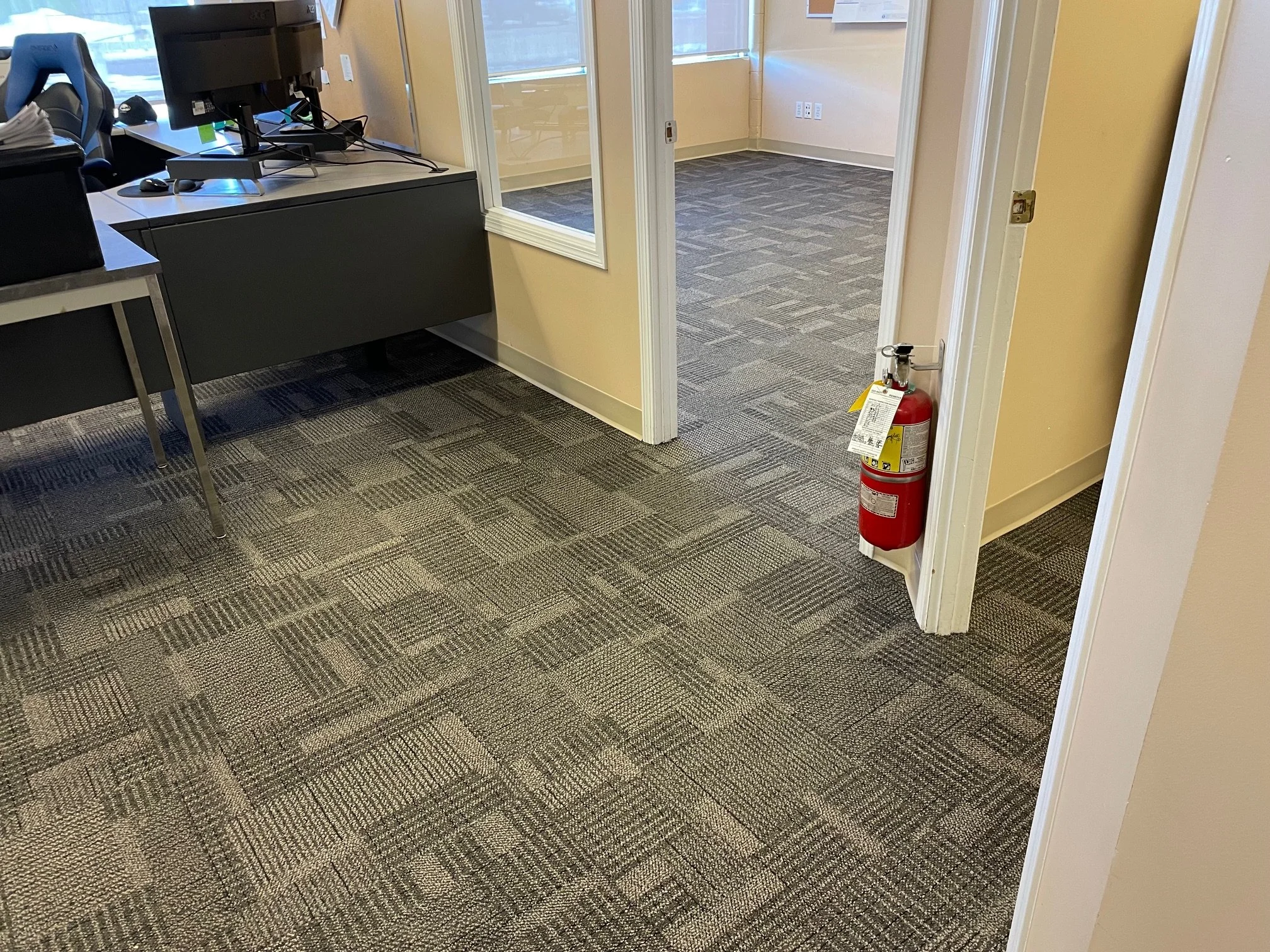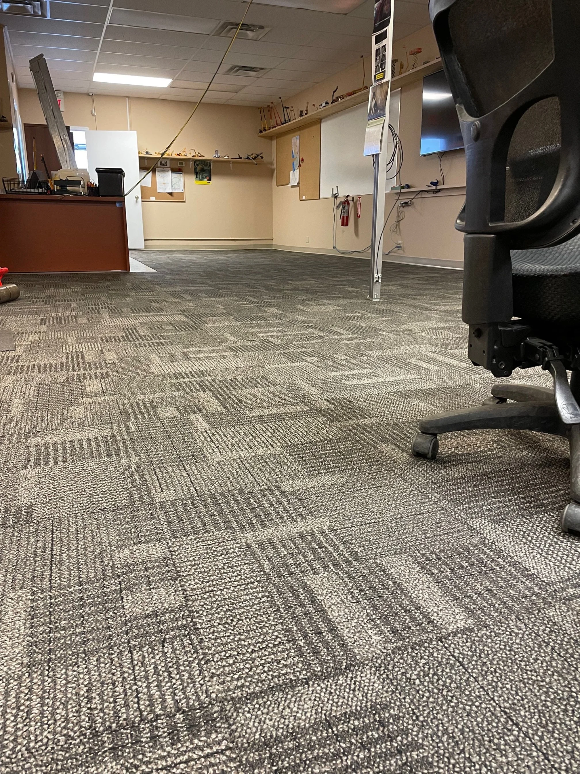 High-quality carpet tiles installed for a professional office environment, combining durability, comfort, and a clean, modern look that enhances productivity.