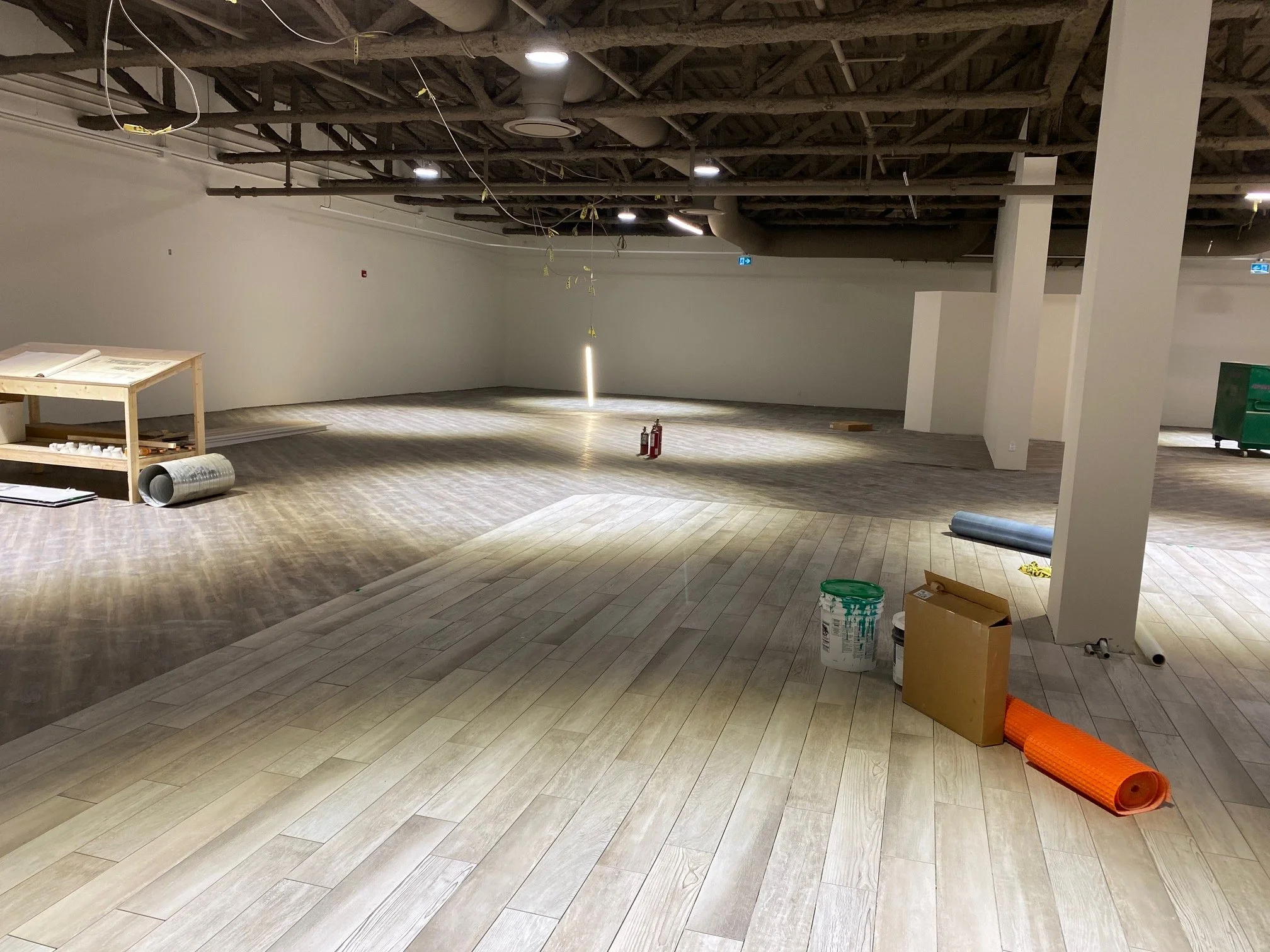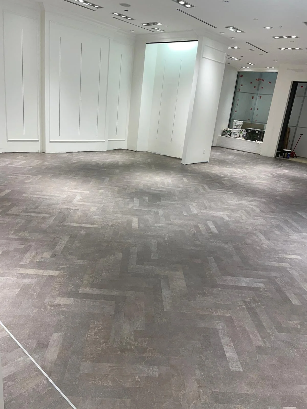 Seamless integration of durable porcelain tiles and stylish vinyl flooring, creating a modern, functional, and visually appealing space for both residential and commercial areas.