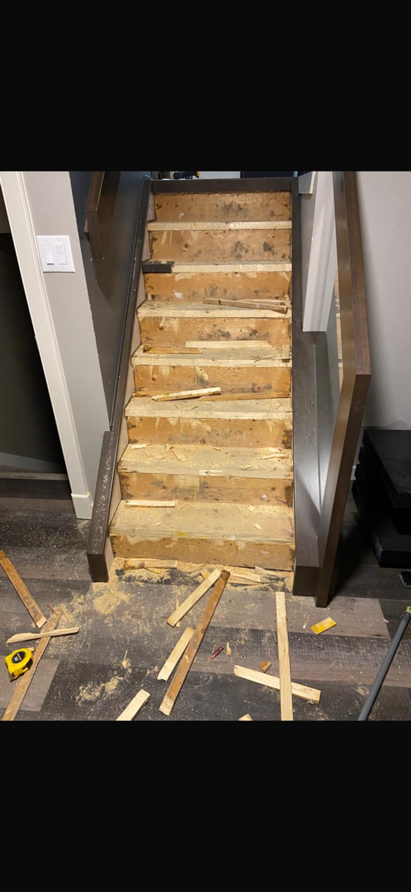 A striking before-and-after transformation of box-style steps with sleek vinyl flooring, enhancing both durability and visual appeal.